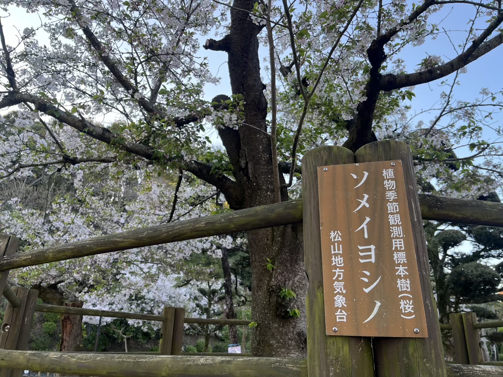 今朝はいつもの平日コース。天気はよかったけど、スタート時点で気温6度と寒くて、冬の格好で走る。道後公園内のソメイヨシノの「植物季節観測用標本樹」、はじめて確認。これまで見落としていた。